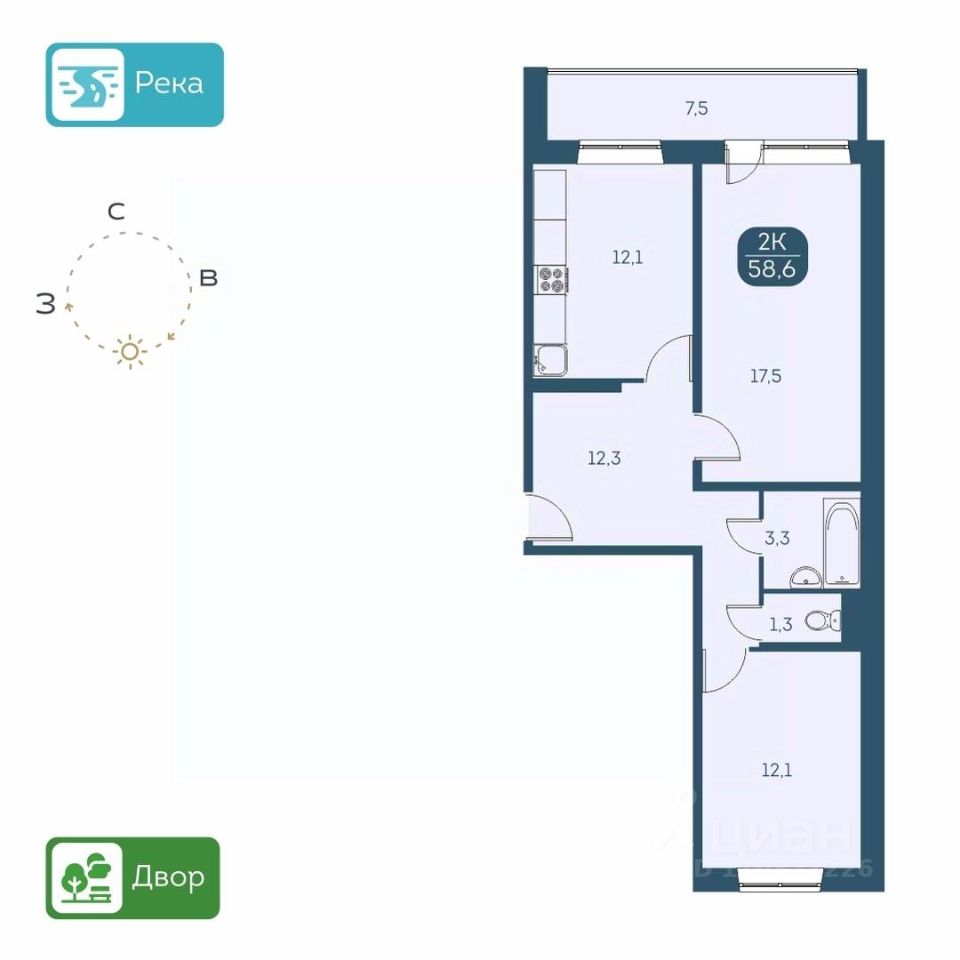КВАРТИРА - Высота потолков 2,6 м. - Есть варианты квартир с ремонтом и в предчистовой отделке - Большие лоджии 7 м. - Вид из окон на детские площадки или на набережную