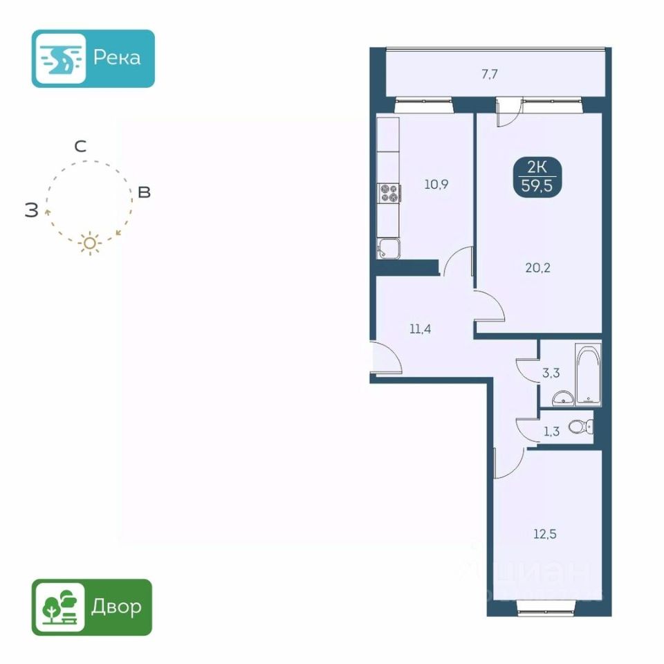 КВАРТИРА - Высота потолков 2,6 м. - Есть варианты квартир с ремонтом и в предчистовой отделке - Большие лоджии 7 м. - Вид из окон на детские площадки или на набережную