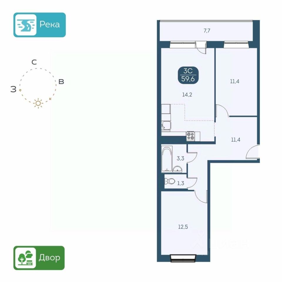 КВАРТИРА - Высота потолков 2,6 м. - Есть варианты квартир с ремонтом и в предчистовой отделке - Большие лоджии 7 м. - Вид из окон на детские площадки или на набережную