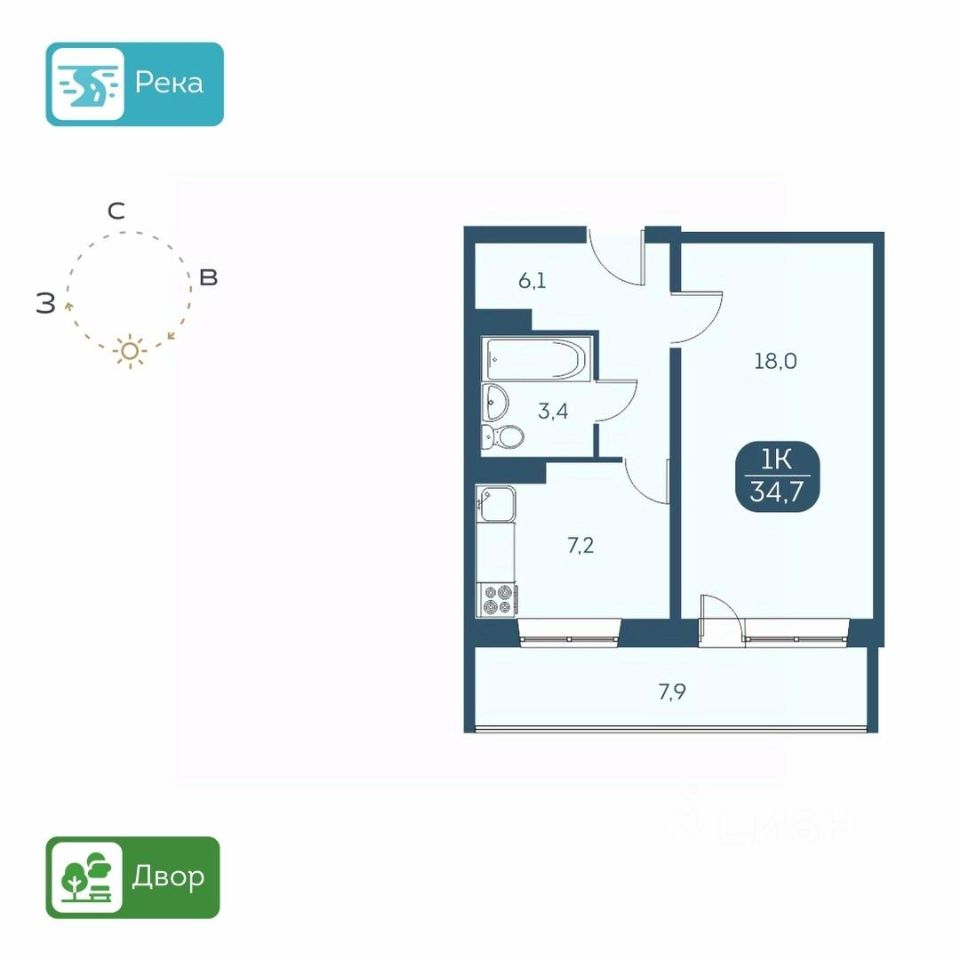 КВАРТИРА - Высота потолков 2,6 м. - Есть варианты квартир с ремонтом и в предчистовой отделке - Большие лоджии 7 м. - Вид из окон на детские площадки или на набережную