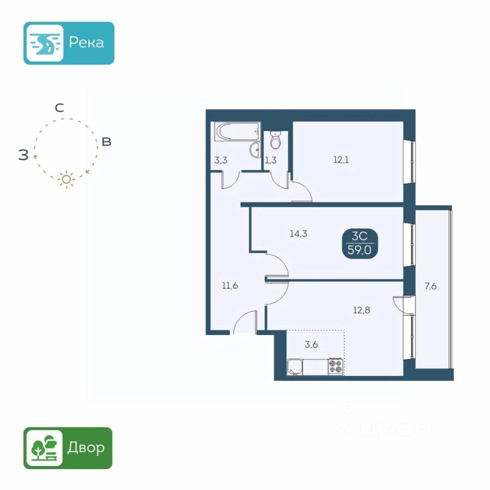 КВАРТИРА - Высота потолков 2,6 м. - Есть варианты квартир с ремонтом и в предчистовой отделке - Большие лоджии 7 м. - Вид из окон на детские площадки или на набережную