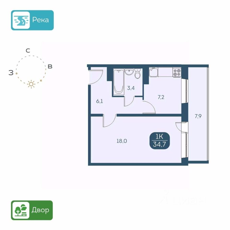 КВАРТИРА - Высота потолков 2,6 м. - Есть варианты квартир с ремонтом и в предчистовой отделке - Большие лоджии 7 м. - Вид из окон на детские площадки или на набережную