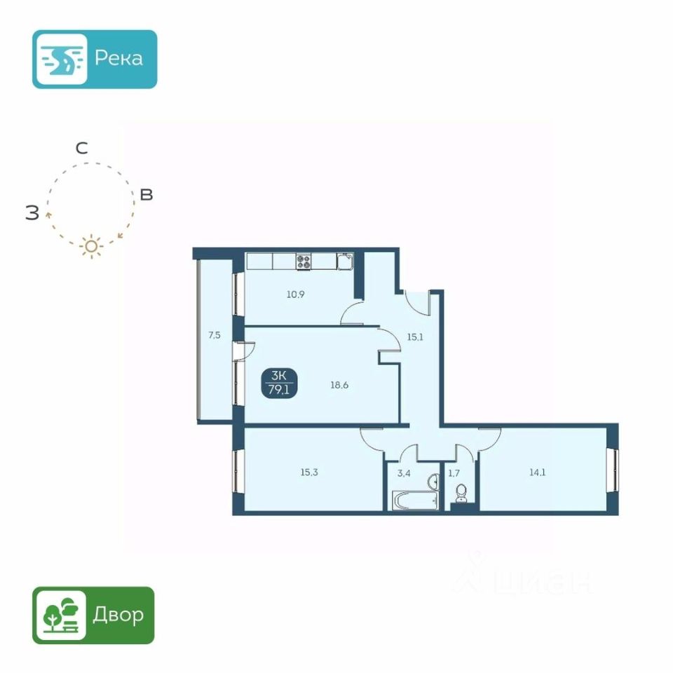 КВАРТИРА - Высота потолков 2,6 м. - Есть варианты квартир с ремонтом и в предчистовой отделке - Большие лоджии 7 м. - Вид из окон на детские площадки или на набережную