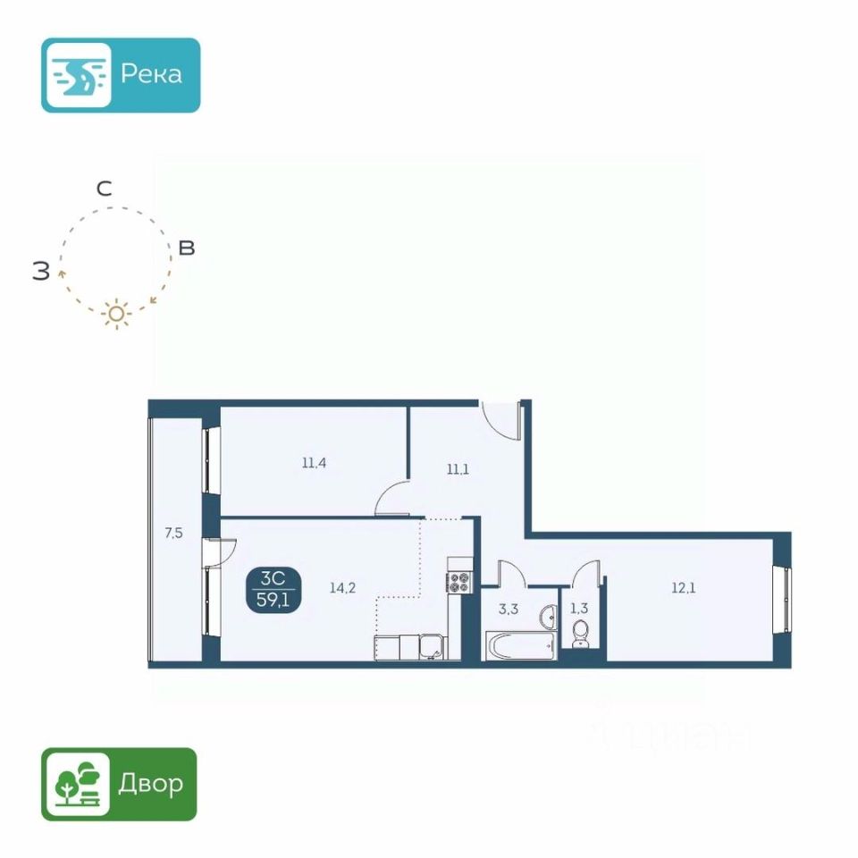 КВАРТИРА - Высота потолков 2,6 м. - Есть варианты квартир с ремонтом и в предчистовой отделке - Большие лоджии 7 м. - Вид из окон на детские площадки или на набережную