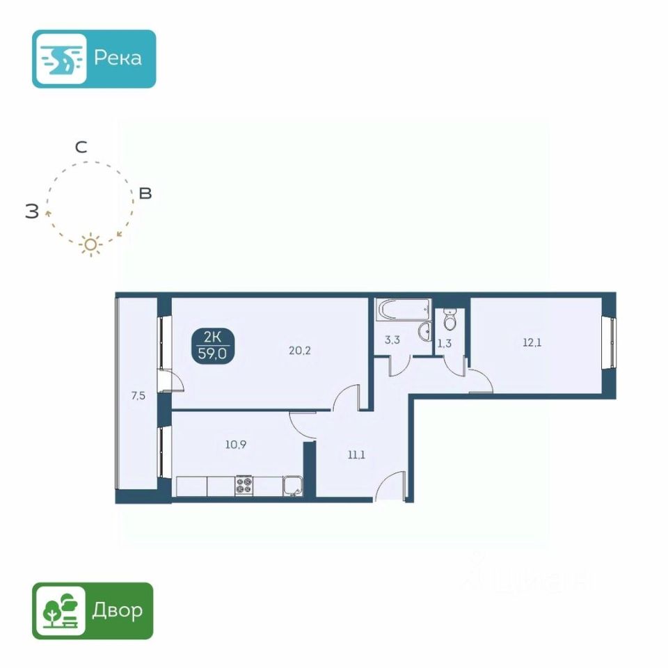 КВАРТИРА - Высота потолков 2,6 м. - Есть варианты квартир с ремонтом и в предчистовой отделке - Большие лоджии 7 м. - Вид из окон на детские площадки или на набережную