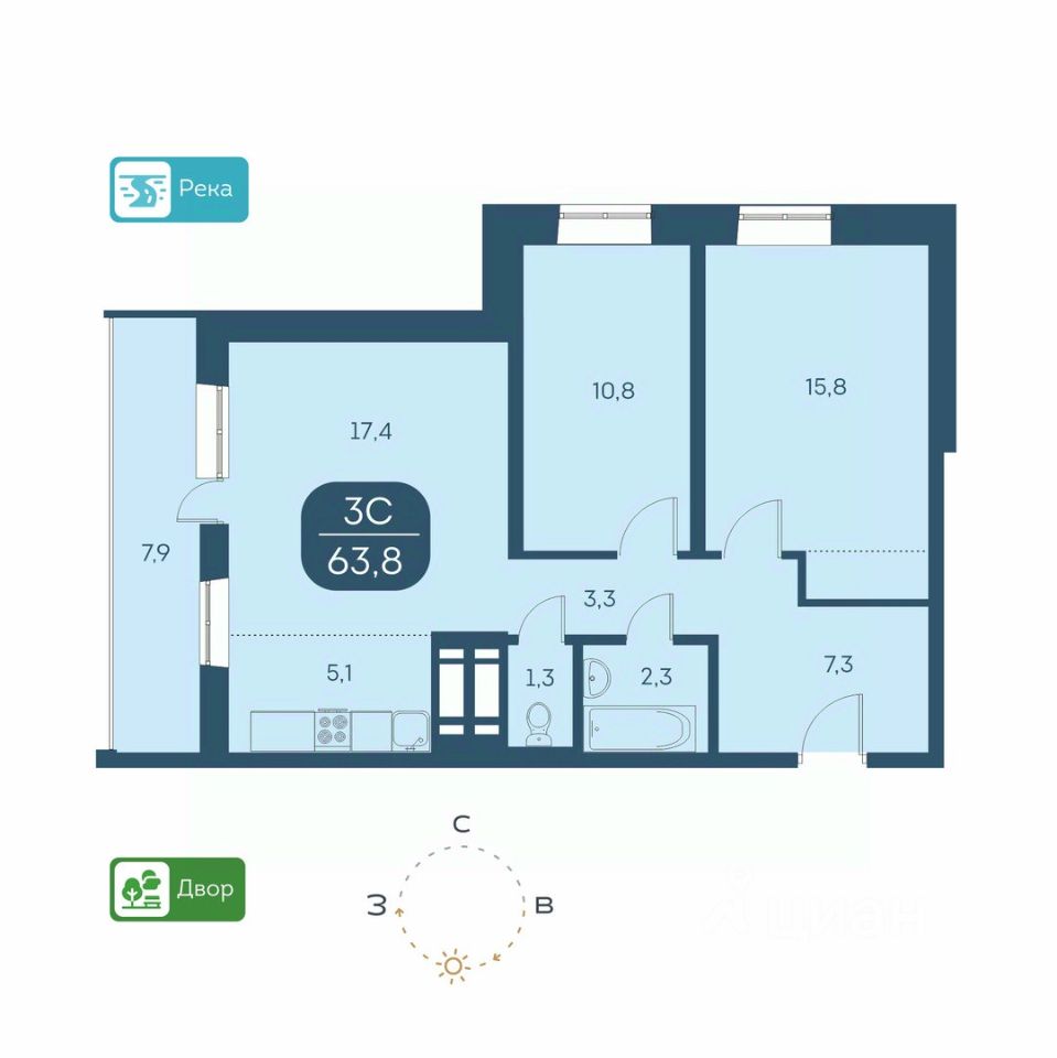 КВАРТИРА - Высота потолков 2,5 м. - Есть варианты квартир с ремонтом и в предчистовой отделке - горизонтальная разводка отопления - Большие лоджии 7 м. - Вид из окон на детские площадки или на набережную