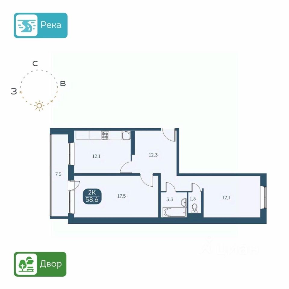 КВАРТИРА - Высота потолков 2,6 м. - Есть варианты квартир с ремонтом и в предчистовой отделке - Большие лоджии 7 м. - Вид из окон на детские площадки или на набережную