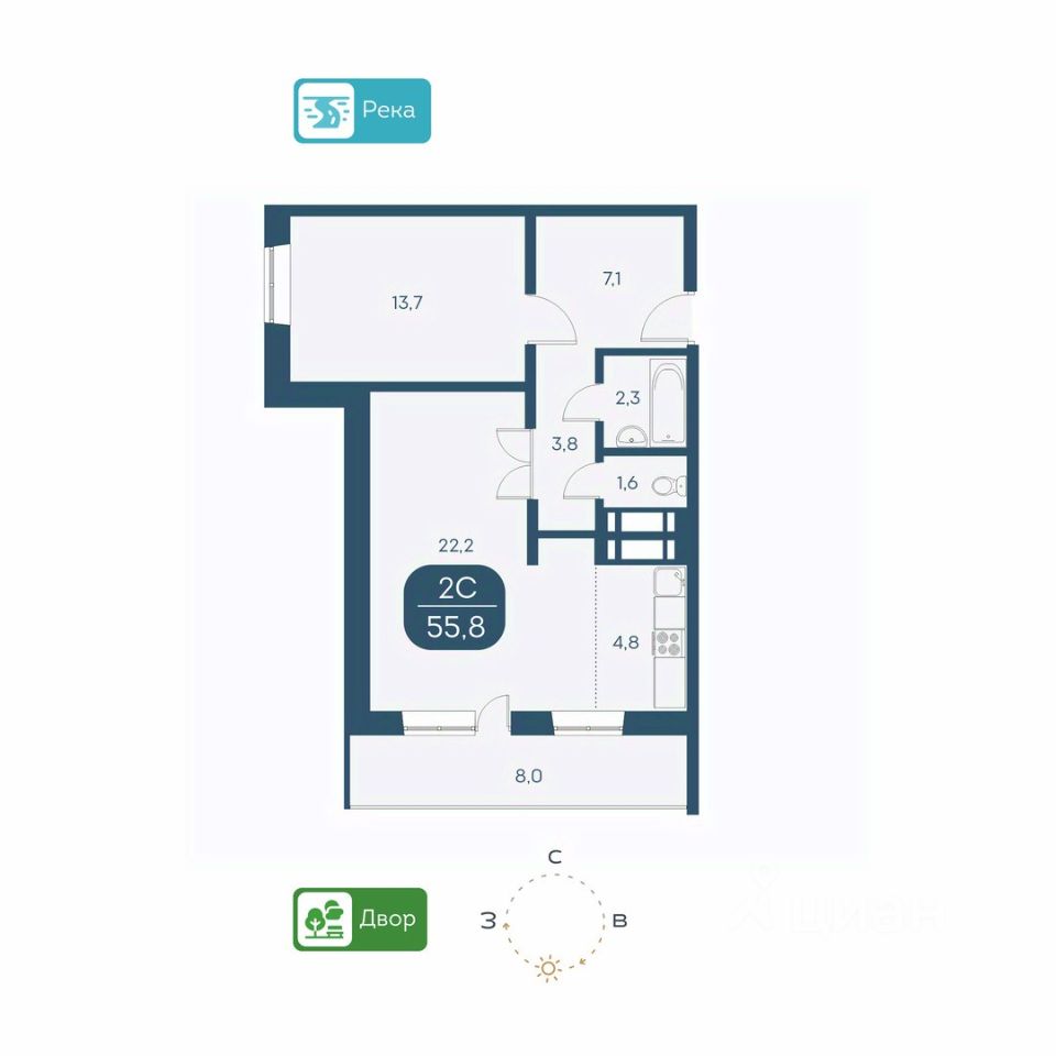 КВАРТИРА - Высота потолков 2,5 м. - Есть варианты квартир с ремонтом и в предчистовой отделке - горизонтальная разводка отопления - Большие лоджии 7 м. - Вид из окон на детские площадки или на набережную