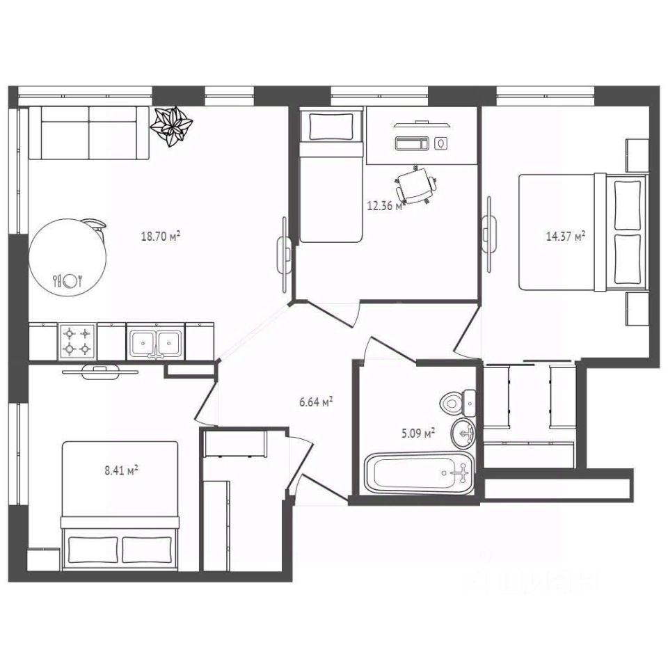 Формат ''чистый лист'' — вы не переплачиваете за чужой ремонт и можете реализовать свой дизайнпроект под себя: выделить мастерспальню с собственным санузлом, сделать кабинет, детские или гостевую комнату.