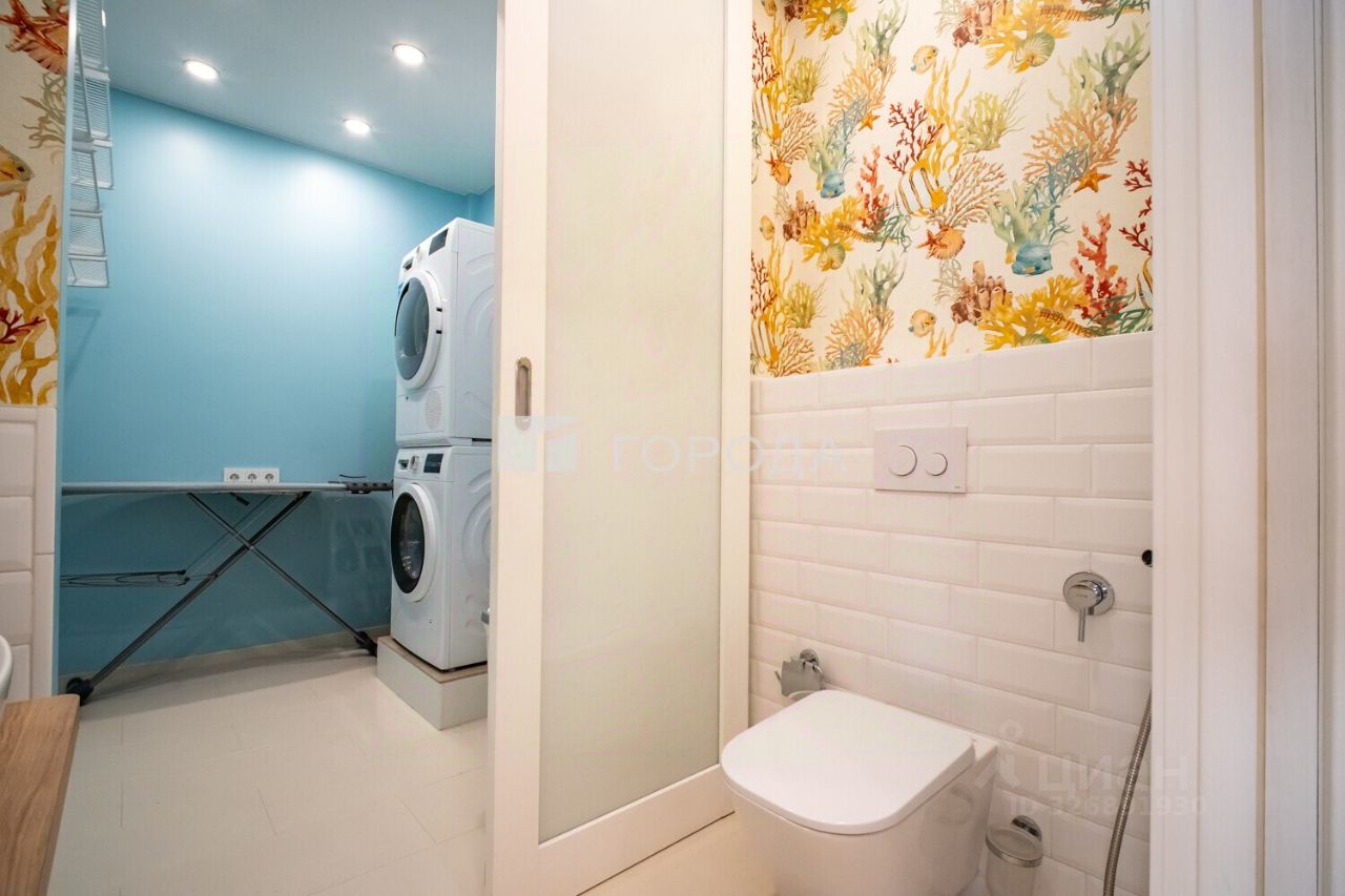 Центром квартиры является просторная кухня и гостиная — место для повседневной жизни и приёма гостей. Изолированная спальня и детская обеспечивают уединение и тишину. Для максимального удобства предусмотрены два санузла, один из которых оборудован ванной и душевой зоной, а также отдельная прачечная.