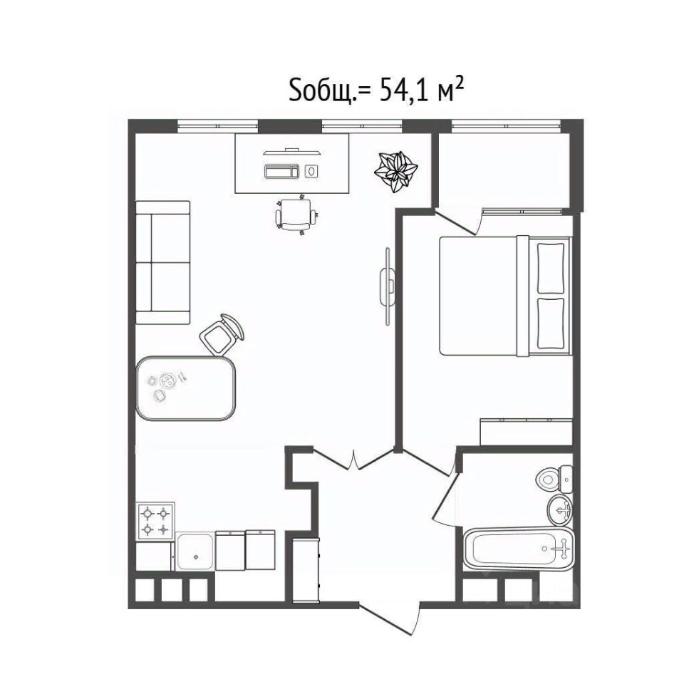 Свободная планировка позволяет создать свой уникальный проект. Площадь квартиры составляет 54,1. - Просторная кухня-гостиная - Спальня - Санузел - Балкон Квартира продается в предчистовой отделке - а это значит что именно Вы сможете создать квартиру мечты, в которую будете с радостью возвращаться!