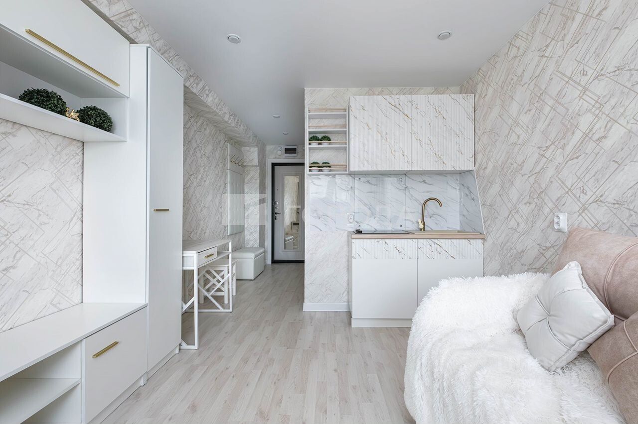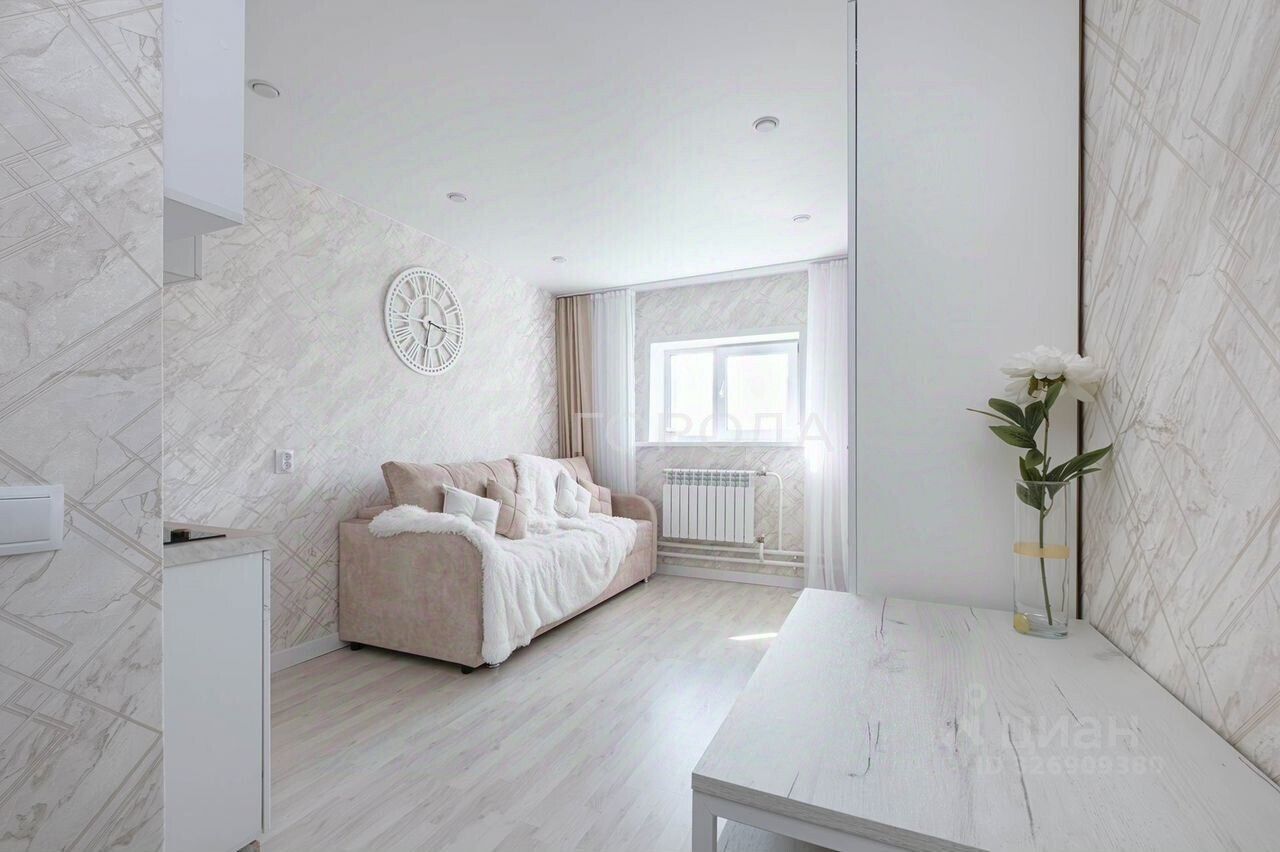 Квартира расположена на 5 этаже современного дома, построенного в 2024 году. Общая площадь составляет 17,5 кв. м, жилая — 10 кв. м, кухня — 3 кв. м. Евроремонт позволит вам сразу заселиться и наслаждаться новым жильём без дополнительных вложений. Окна выходят на улицу, и вы сможете любоваться видами из своего окна.