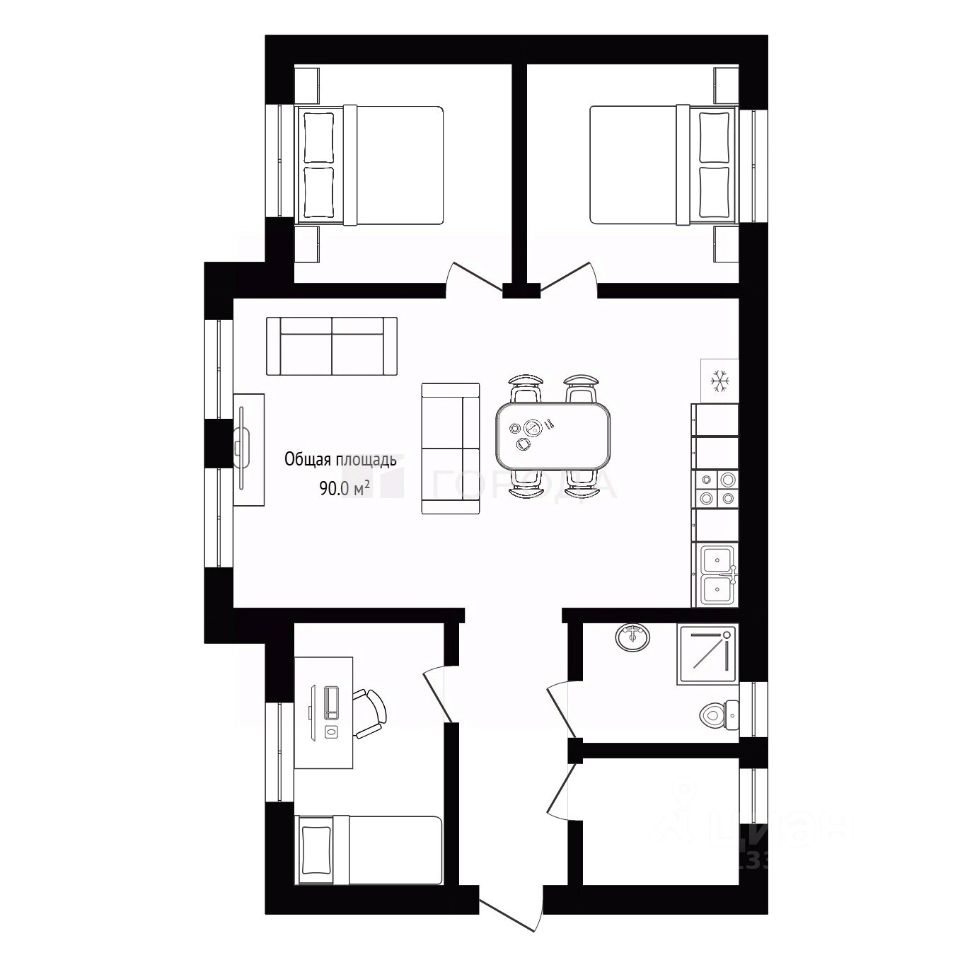 Общая площадь90 м2