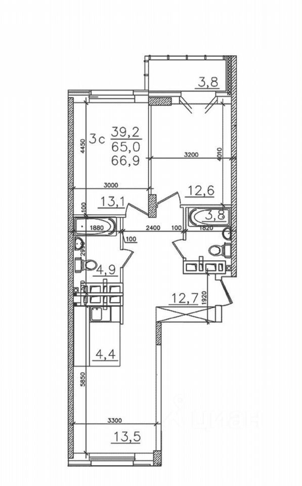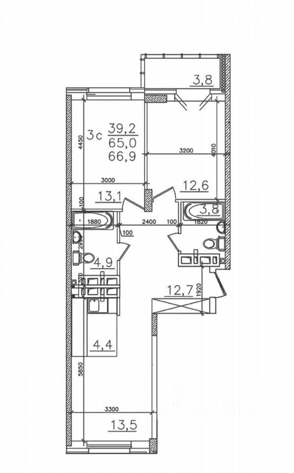 В продаже большая, комфортная, светлая 3-х комнатная квартира студия!