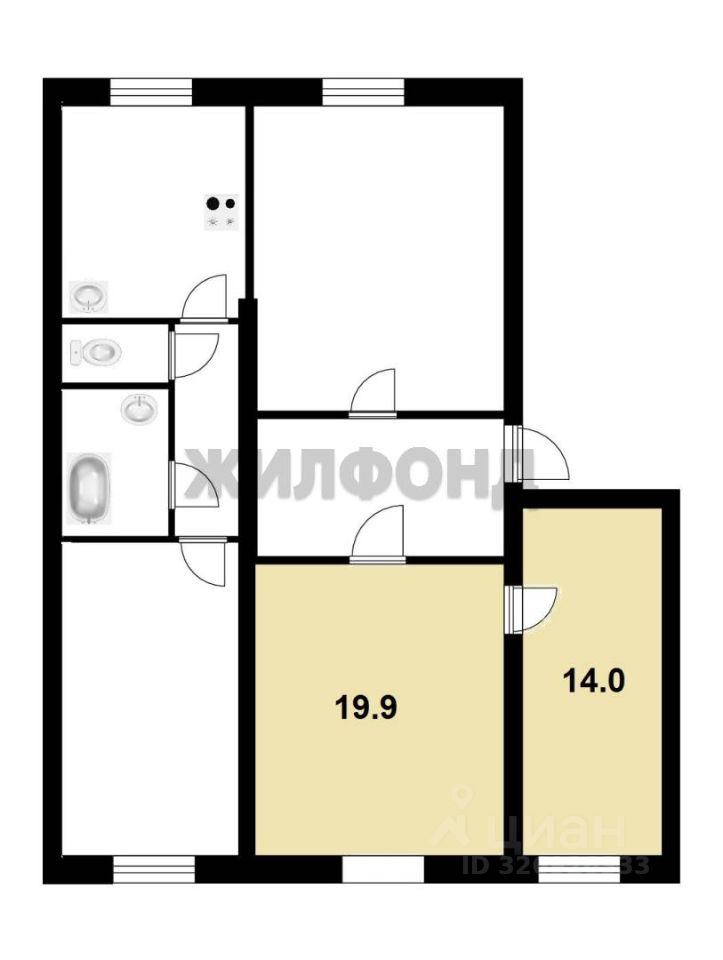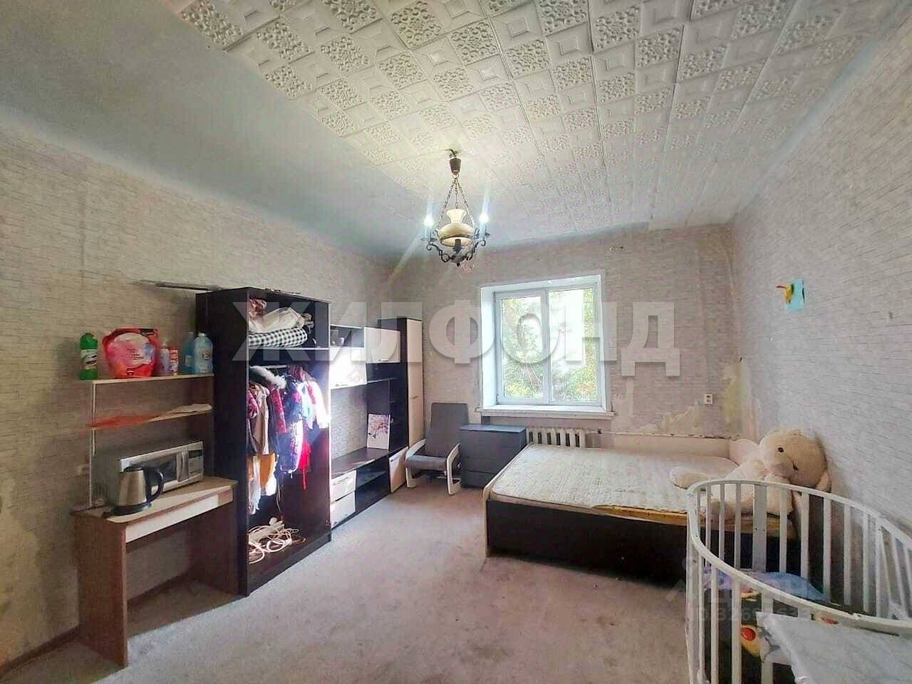 ''Продается жилое помещение, состоящее из 2-х комнат в полногабаритной квартире. Общая площадь помещения составляет 33,9 квадратных метров, что позволит комфортно разместиться большой семье или просторно жить одному. Квартира расположена на втором этаже пятиэтажного дома, что обеспечивает удобство в доме без лифта. Окна пластиковые, выходят на солнечную сторону и пышные кроны деревьев. Перекрытия железобетонные, высота потолков 3 метра. Комнаты и места общего пользования требуют ремонта. Квартира малонаселенная, приятные соседи.