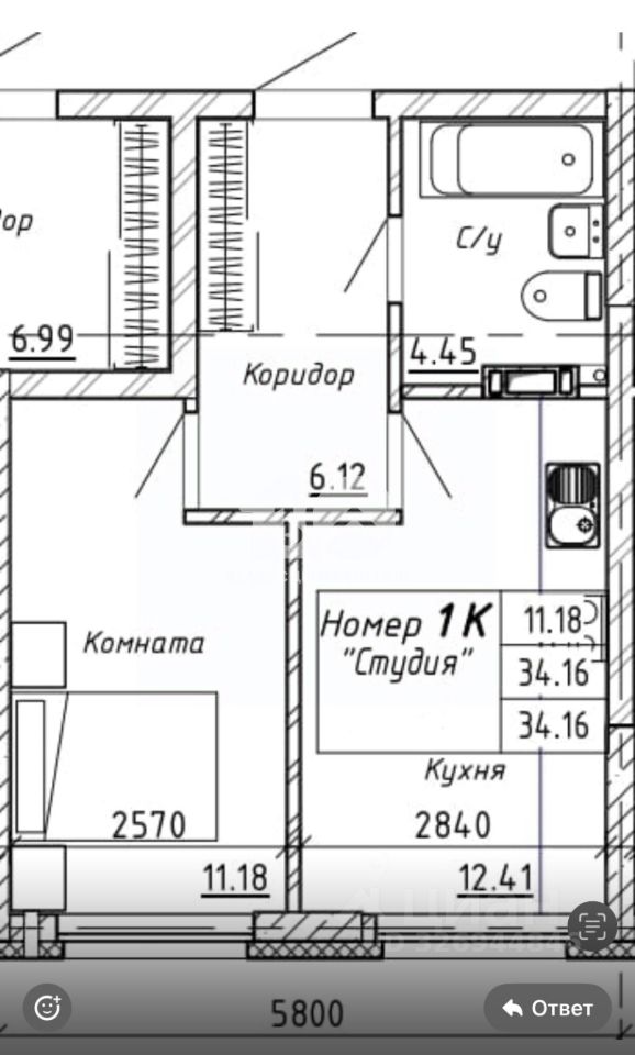 Общая площадь квартиры составляет 34 кв. м, что идеально подходит для молодых специалистов или пары, стремящихся к независимости. Чистовая отделка позволит вам легко приступить к обустройству по своему вкусу.