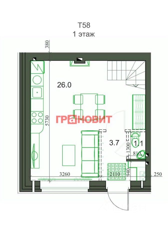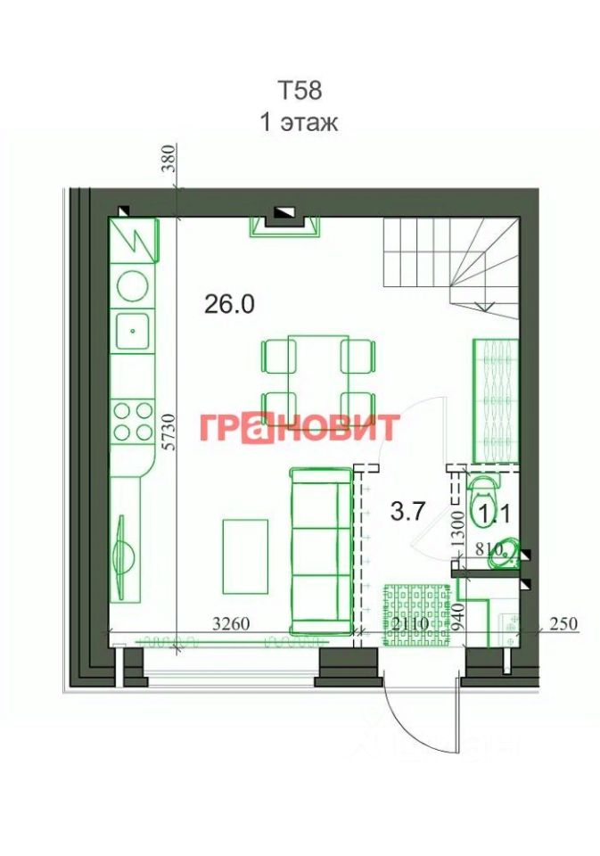 Общая площадь60 м2