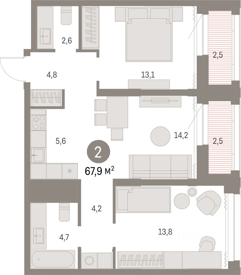 Продаётся 2-комнатная квартира в строящемся доме (Дом 8), срок сдачи: IV-кв. 2026, общей площадью 66.9 кв.м., на 7 этаже. Квартал ''Мылзавод'' расположен в границах улиц Некрасова, Каменская, Писарева и Семьи Шамшиных. Во времена НЭПа на этом месте появилось промышленное предприятие, выпускавшее более тридцати видов мыла. Его продукция славилась высоким качеством и шла на экспорт. Восемь лет назад городские власти решили перенести все заводы из центральной части Новосибирска и отдали этот участок под жилую застройку. Ревитализация промышленных территорий - обычная для европейских городов практика. Она дает возможность насытить старые, неиспользуемые территории новыми востребованными функциями и таким образом ''вернуть'''' городу утраченные пространства. Сегодня вокруг квартала уже сформирована транспортная и социальная инфраструктура. Жители ''Мылзавода'' смогут быстро добраться до главных достопримечательностей города - театра оперы и балета, ''Глобуса'' и краеведческого музея. В шаговой доступности расположены автобусные остановки, две станции метро, четыре школы, а также один из самых больших торговых центров города - ''Галерея''. Квартал состоит из двух 9-этажных урбан-вилл, четырех 17-этажных и трех 30-этажных башен, объединенных стилобатом. В основу концепции ''Мылзавода'', которую Брусника разрабатывала совместно с голландскими и немецкими архитекторами, лег принцип mixed-use . Он предполагает совмещение в пределах одной локации жилого, рабочего, коммерческого и культурно-развлекательного пространств. На первых этажах домов разместятся продуктовые магазины, кафе, офисы, а также частный детский сад на 100 мест.