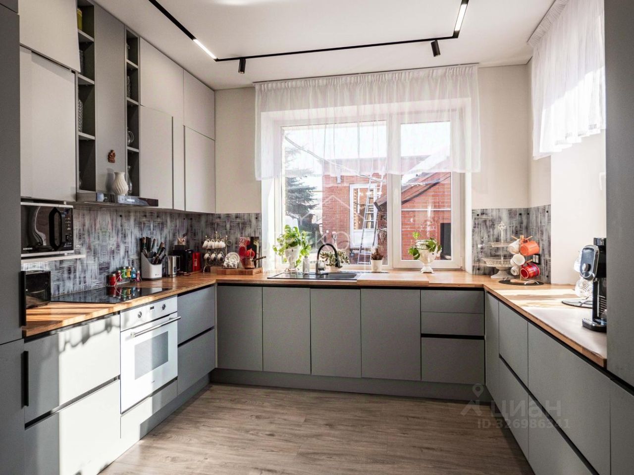 Кирпичный дом площадью 450 м кв На первом этаже реализовано: - кухня-гостиная 35 кв метров - жилое пространство с камином 42 кв метра - 1 изолированная комната - Оранжерея для теплолюбивых растений 50 кв метров На втором этаже размещены: - 4 изолированные спальни - санузел - утепленный эркерный балкон - спортивный зал 50 кв метров На -1 этаже: - Сауна с комнатой отдыха, душевой - 33 кв метра - Зона бассейна (7 м в длину), душевая. Бощая площадь 50 кв метров. С выходом на террасу - Бойлерная (котельная) - Мастерская (хозблок)
