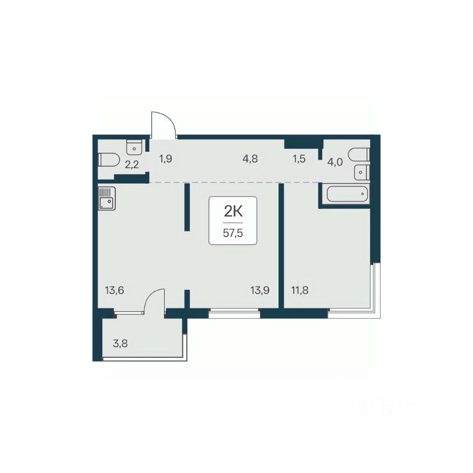 Продаётся 2-комнатная квартира в строящемся доме (Дом 13), срок сдачи: III-кв. 2027, общей площадью 57.5 кв.м., на 12 этаже. Новый жилой комплекс ''Акация на Игарской'' от застройщика ООО СЗ Аквамарин (Акация) расположен в Калининском районе г. Новосибирск в границах улиц Игарская и Фадеева.