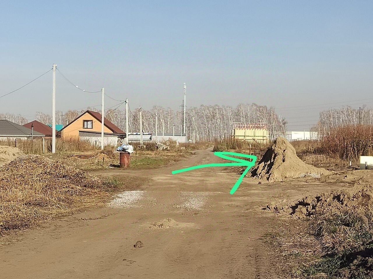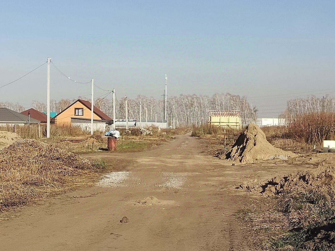 На фото справа вдали недостроенный жёлтый дом — это ориентир по участку — улица 70 лет Победы, 8а. Можно посмотреть на карте. Столбы электрические на фотках видно, у соседей газ и центральное отопление. Дорогу зимой чистят хорошо. Удобное расположение, в центре Садового. До остановки в город идти минуты две. До школы 5 минут, Магнит видно с участка.