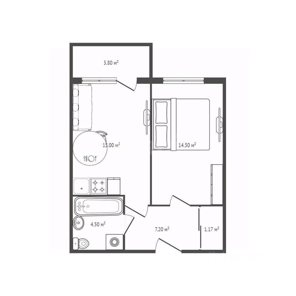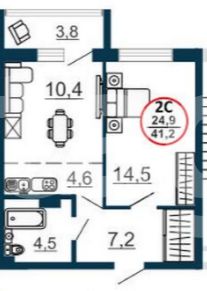 Практичная функциональная планировка. Общая площадь 41,2 м., площадь зоны кухни 4.6 м. Совмещенный санузел 4,5 м. Предусмотрена выгородка под гардеробную. Квартира в предчистовой отделке под ремонт вашей мечты позволяет воплотить любые дизайнерские идеи.