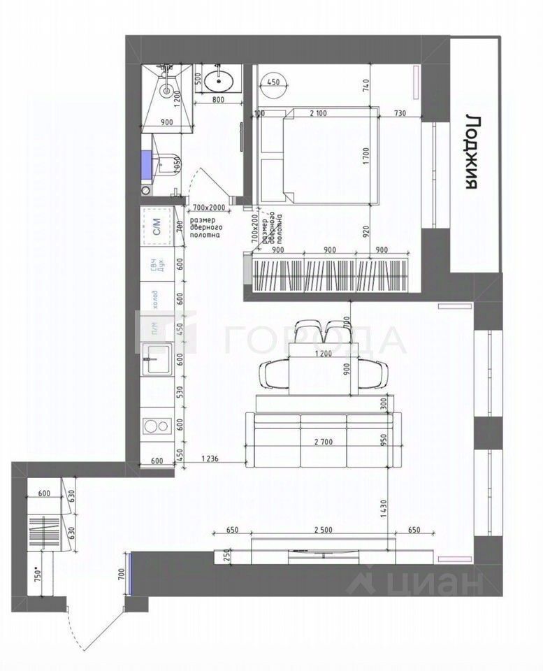 Расположение квартиры — не угловая, что обеспечивает хорошую тепло- и шумоизоляцию. Есть одна лоджия, где можно обустроить зону отдыха.
