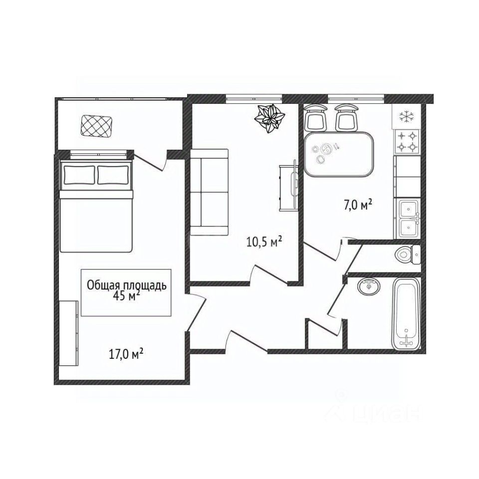 Объект продается полностью меблированным, с готовой бытовой техникой, что позволяет заселиться сразу после сделки. Квартира характеризуется юридической чистотой — один взрослый собственник.