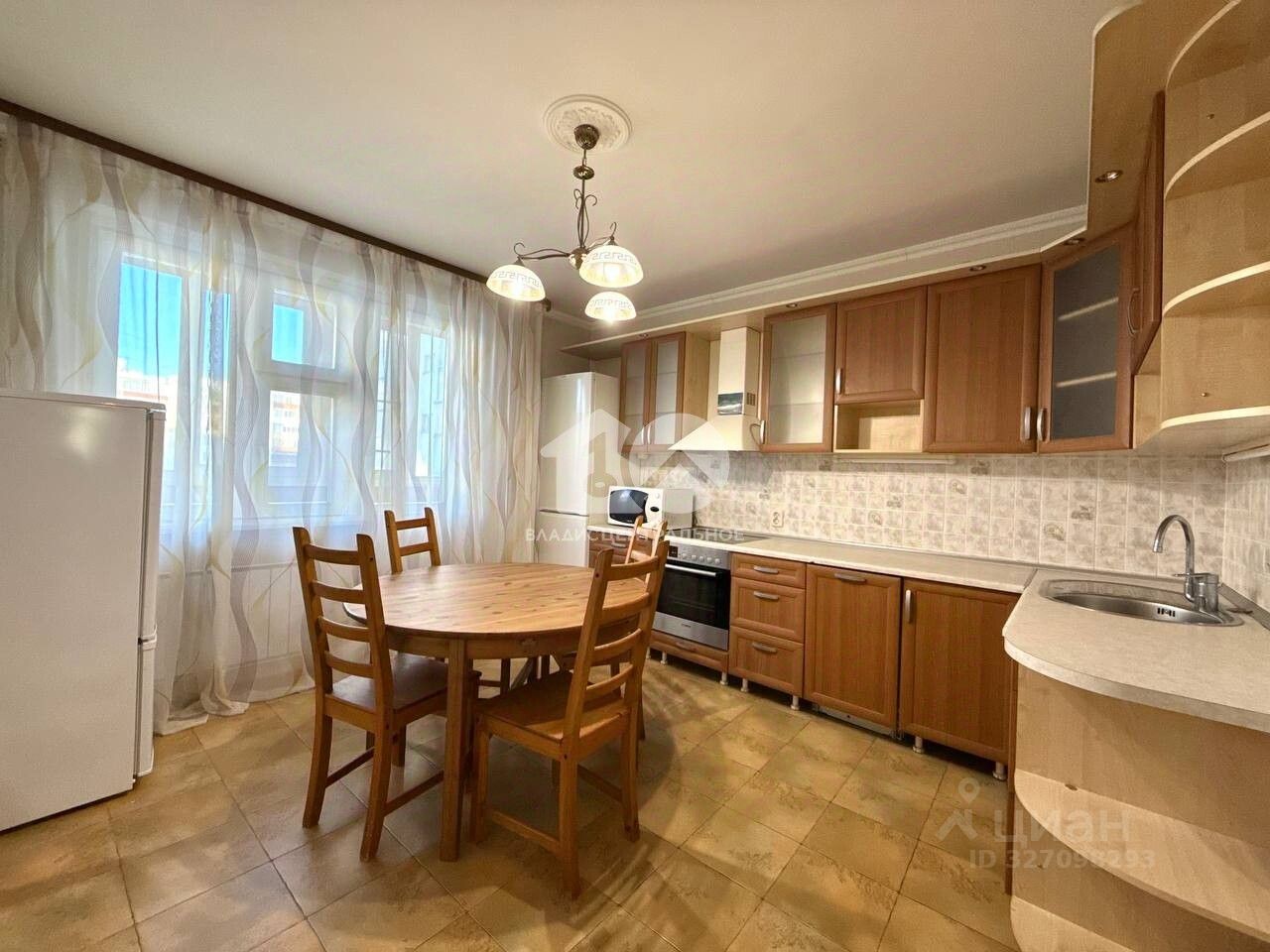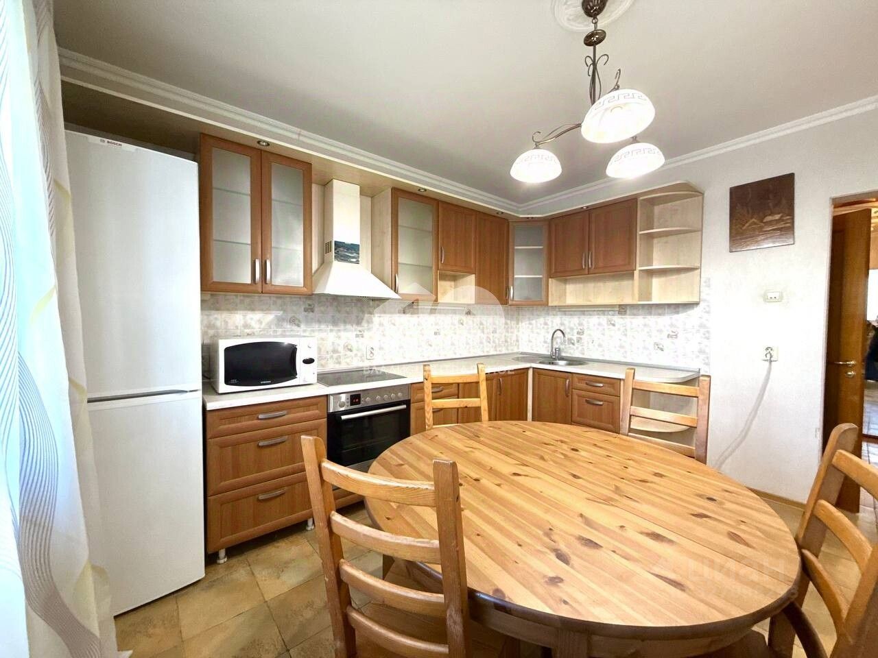 В квартире выполнен ремонт качественными материалами, стены выровнены, напольное покрытие качественное и в хорошем состоянии. Ванная комната и санузел полностью отделаны кафелем. Большая кухня-гостиная и полноценные 2 комнаты. Планировка с обзором на обе стороны дома.