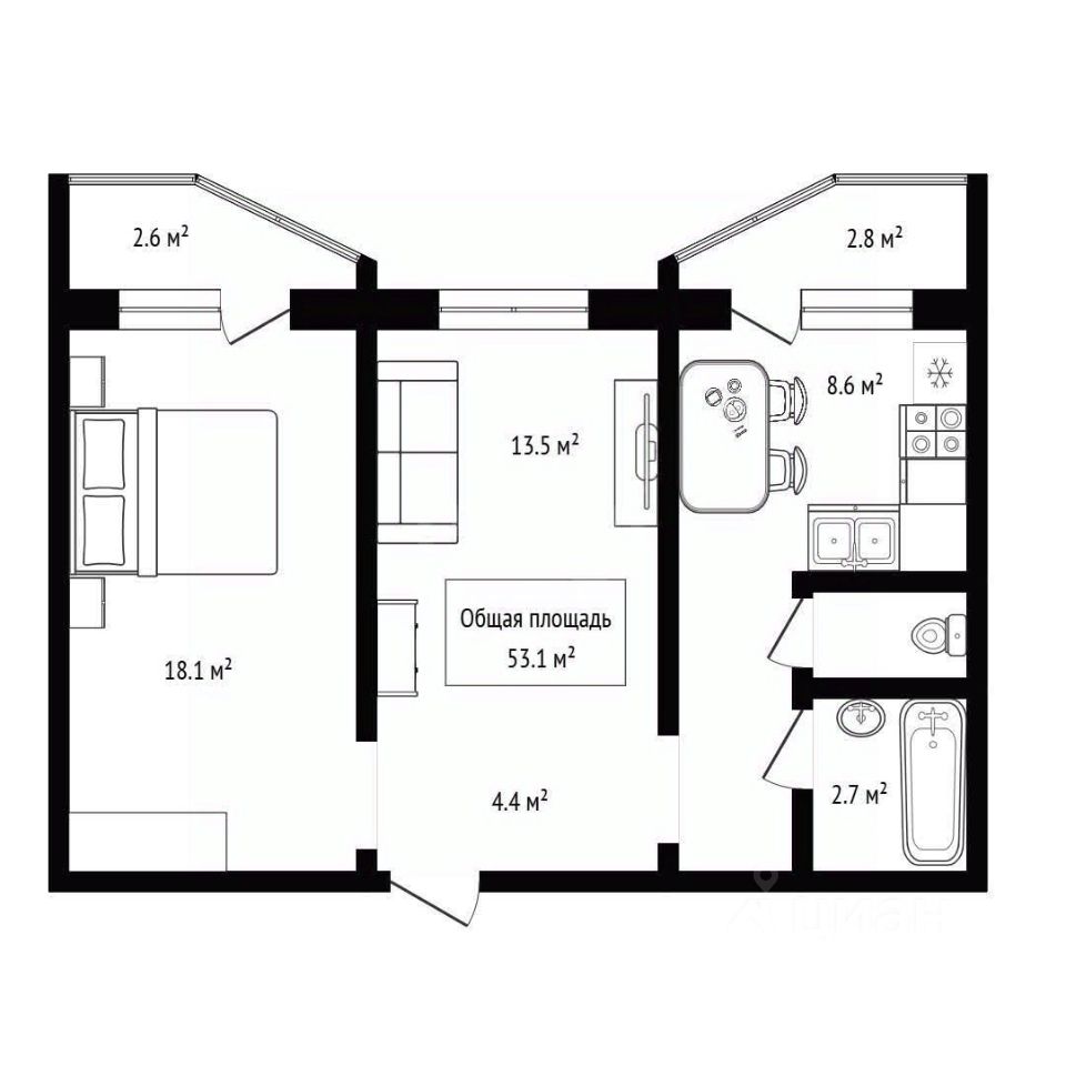 Планировка Квартира с двумя изолированными комнатами + большая кухня гостиная, 2 балкона. Раздельный сан узел. Идеальная семейная планировка. В подъезде 2 лифта.