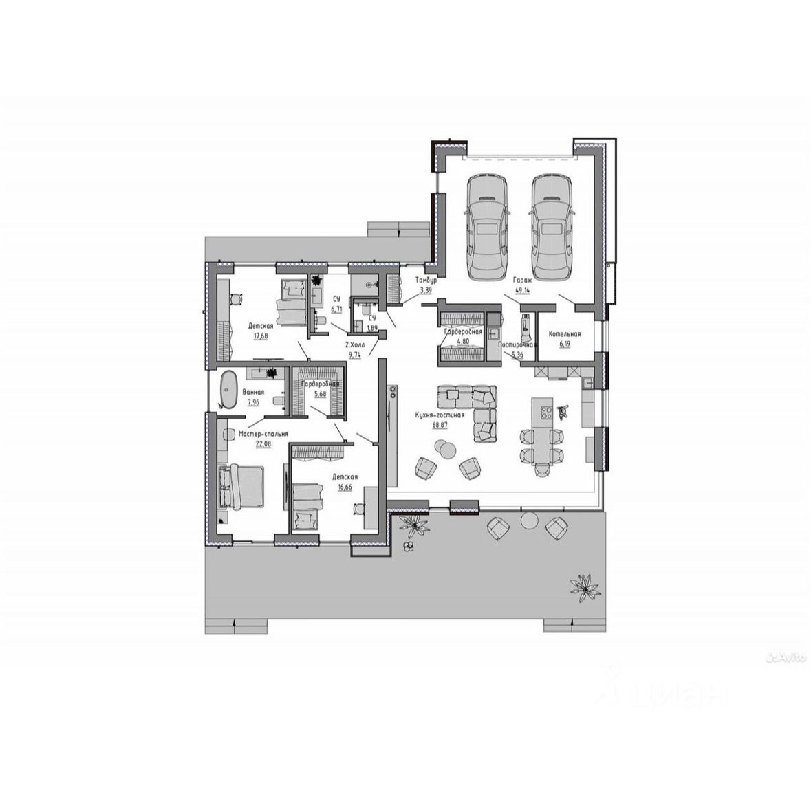 Идет строительство современного дома на территории коттеджного поселка Лаки Парк. Лаки Парк — коттеджный поселок с развитой инфраструктурой: бассейн, детские площадки, ресторан, три контактных зоопарка. Полноценный одноэтажный дом из кирпича с паркингом на два машиноместа. Компактный дом, но включает в себе все необходимое для комфортной загородной жизни. Материал стен: внешние - кирпич 380мм+ утеплитель+внешняя отделка (толщина слоев варьируется в зависимости от материала). Внутренние : Кирпич 380мм несущие стены, кирпич 120 мм - внутренние. Пространство дома будет вмещать просторную кухню-гостиную, мастер-спальню, две детские, санузел. По желанию клиента дом может быть выполнен под ключ: с разработкой дизайн-проекта интерьера с мебелью и полной реализацией проекта на стороне исполнителя.