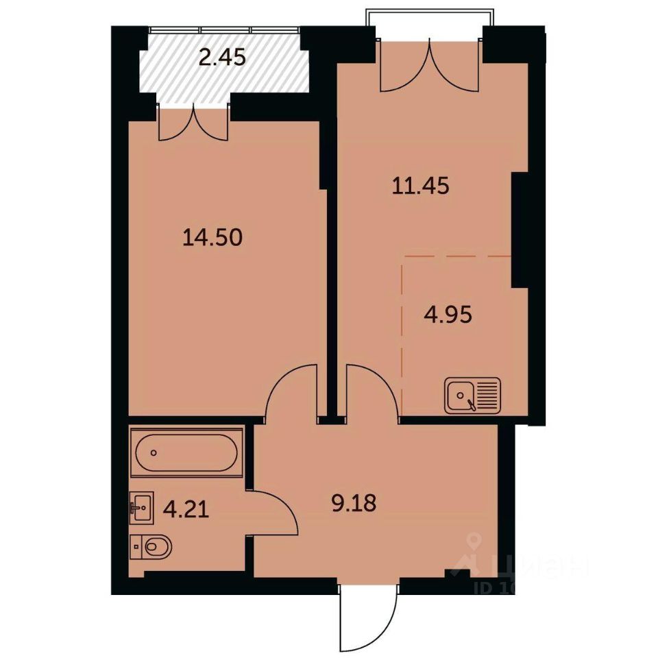 Общая площадь45,4 м2