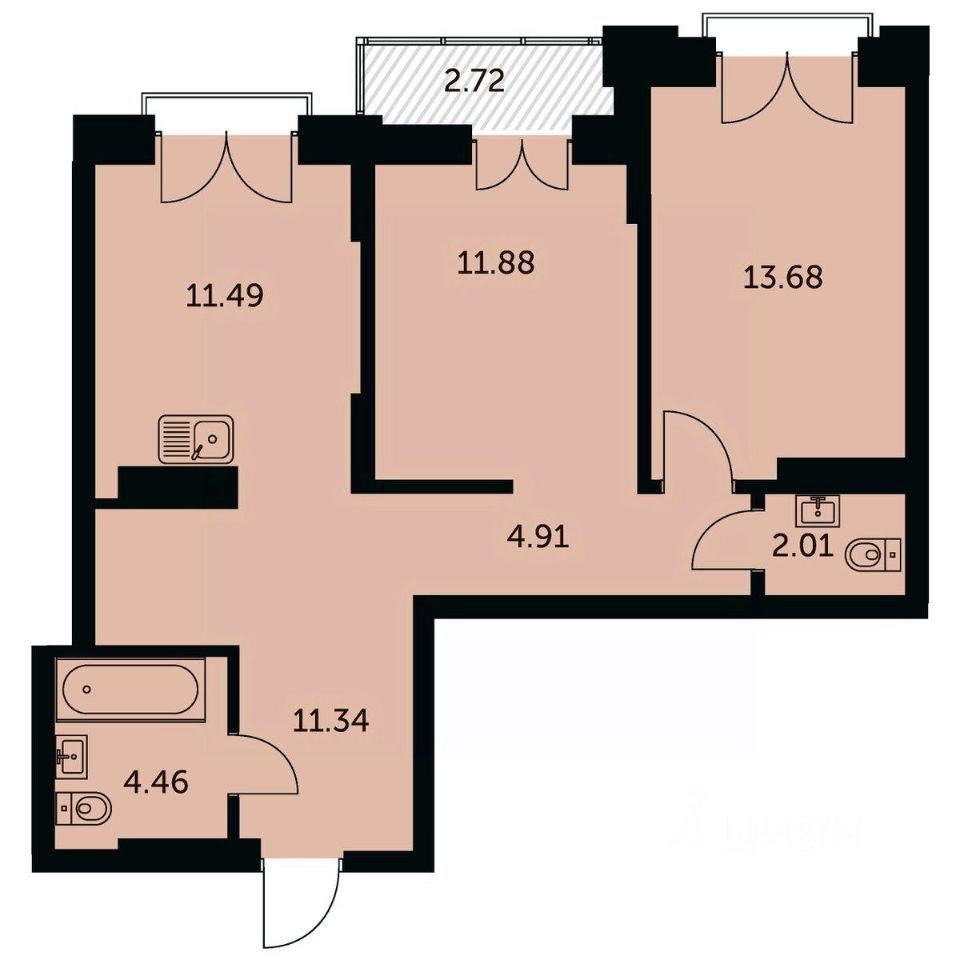 Общая площадь61,1 м2