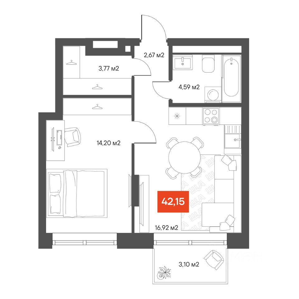 Общая площадь40,85 м2
