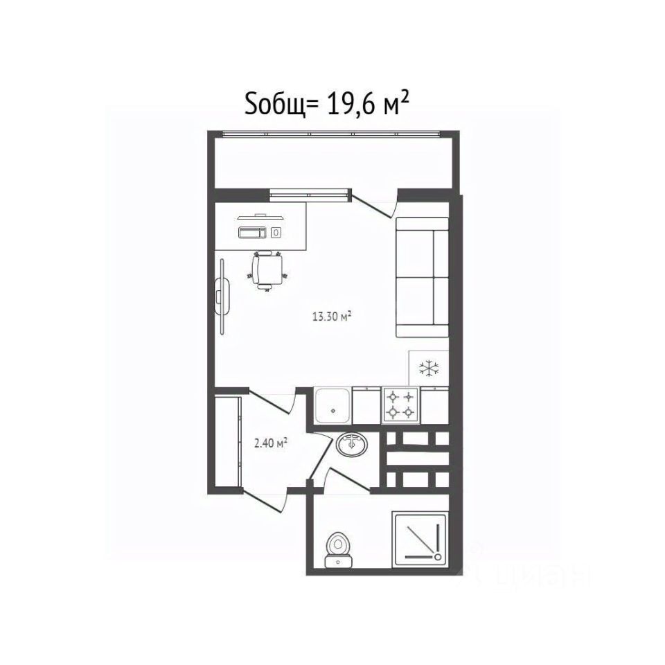 - Площадь: 19,6 м² (без учета лоджии). - Лоджия это — дополнительное пространство для отдыха или хранения. - Удачная планировка позволяет эффективно использовать каждый квадратный метр. - В квартире остается практически вся мебель и бытовая техника, готовая к использованию.