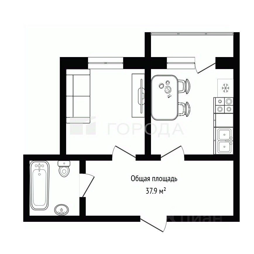 Код объекта: 2037937. Продаётся 1-комнатная квартира площадью 37,9 кв. м на улице Николаева, 18.