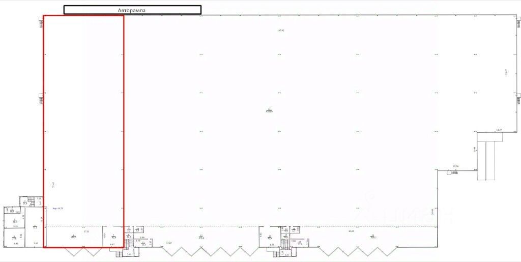 Характеристики: - Класс А, общая площадь 1 700 кв.м. - Склад 1 700 кв.м. - Офис 300 кв.м. (опционально, при необходимости) - Мезонин 1000 кв.м. (опционально, при необходимости) - Деление от 1 300 кв.м. - Статус построен - Состояние типовой ремонт, планировка смешанная - Рабочая высота 12 м., - Стеллажная система на 1 500 падллетомест (включена в ставку) - Тип пола наливной, отметка пола 1,2 метра - Количество ворот 3 (1 на авторампе длиной 12 метров), доковое оборудование ворота секционные, доклевеллер, докшелтер. - Освещение диодное - Пожарная сигнализация, пожарные гидранты, сплинклерная система пожаротушения