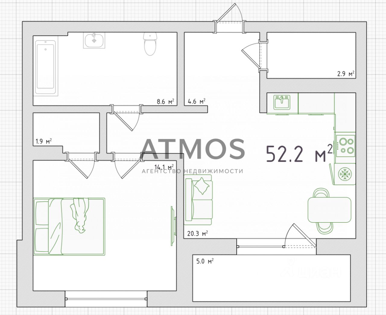 Арт. 130116219 Предлагаем вашему вниманию уютную 2-комнатную квартиру, расположенную на 3-м этаже 9-этажного дома на Европейском берегу. Общая площадь составляет 52,2 квадратных метра.
