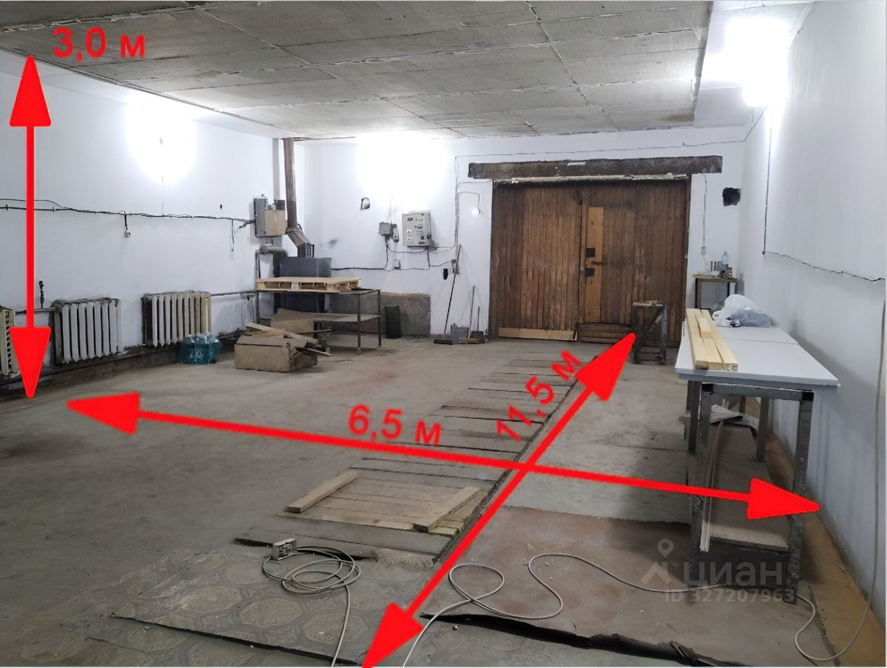 Размер 6,5*11,6 потолок 3 метра.