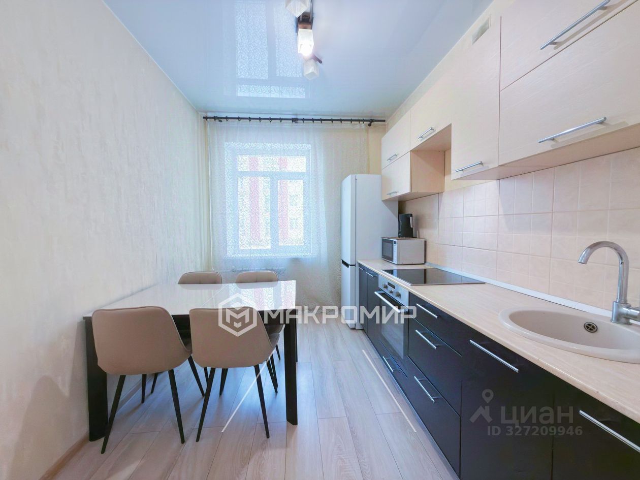 Ремонт простой, без пафоса, но это позволяет не переплачивать за чужие решения, сразу въехать и жить, а обновить пространство постепенно — по своему бюджету и вкусу. Из мебели остаются кухонный гарнитур с варочной панелью и духовкой — то, что реально пригодится с первого дня. Высота потолков — 2,8 м, что даёт ощущение свободы и пространства.