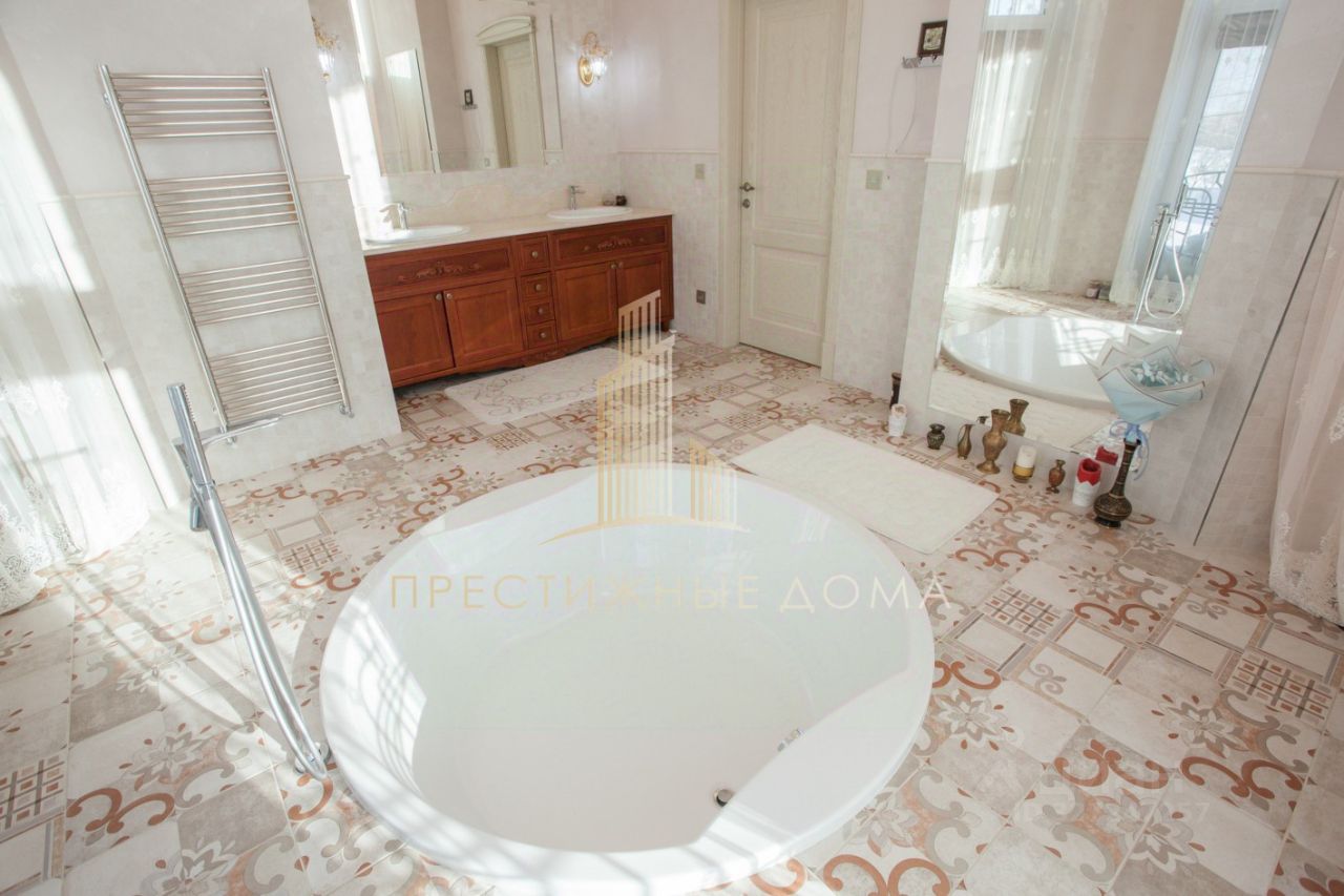 О доме: - 485 кв м - отдельно- стоящее помещение гараж 270 кв м на 3 машины, второй этаж - гостевой дом с кухней, гостиной , спальней ( от дома до гаража подземный переход ) - 1 этаж: просторная гостиная с камином, кухня 41 кв м, , гардеробная, с/у, гостевая спальня - 2 этаж: 2 спальни, 2 с/у, ванная комната с потолками 4 м, 2 кабинета - Идеальное состояние дома - Высокие потолки - Высококачественные и дорогостоящие материалы использованы в строительстве дома и отделке - Из спален дома есть выходы на терассы с потрясающим видом на лес - Ухоженная большая зелёная территория - гараж на 2 автомобиля - Дом кирипичный - Видеонаблюдение по всему периметру дома - Круглосуточная охрана - Банный комплекс в цоколе: хамам, русская баня, спортзал, огромный бассейн с джакузи