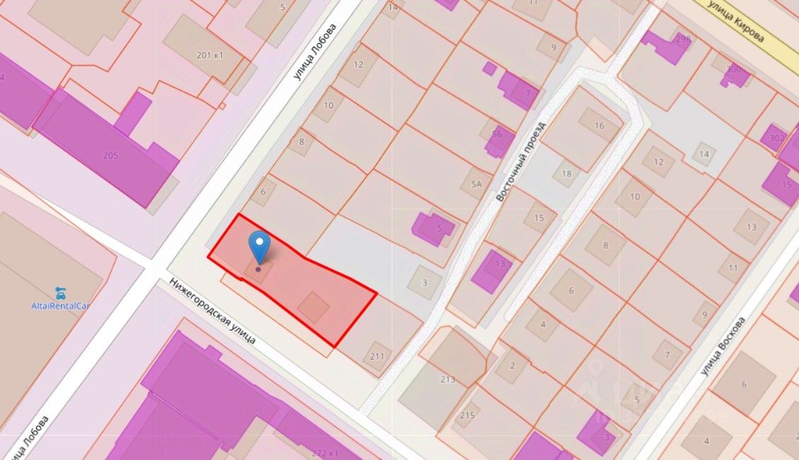 Aдрес: г. Нoвocибиpск, ул. Нижегородская 207Kадаcтpовый номер: 54:35:074305:19Площадь: 1345 м² (правильная прямоугольная форма — легко спланировать застройку!)Категория земель: земли населенных пунктов. Вид разрешенного использования: общественное здание административного назначения ТРАНСПОРТНАЯ ДОСТУПНОСТЬ