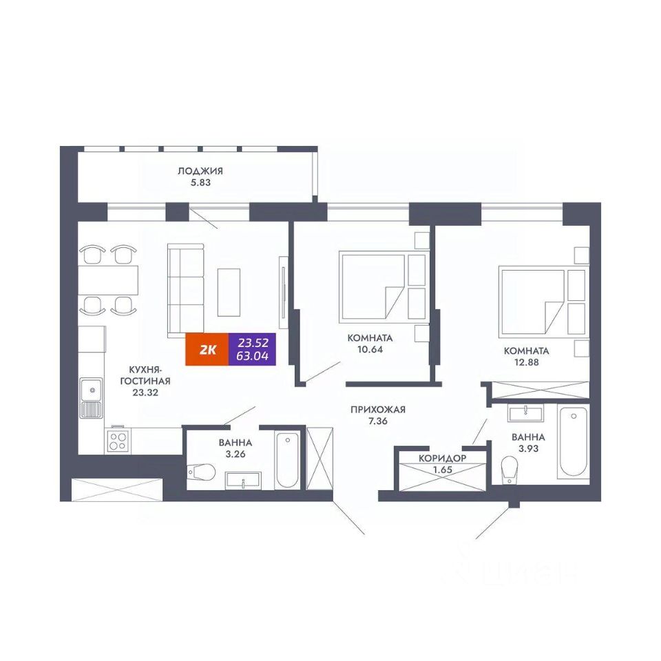 Общая площадь63,04 м2