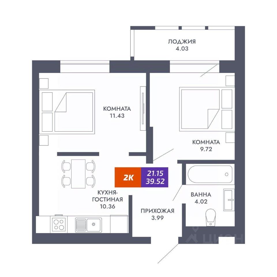 Общая площадь39,52 м2
