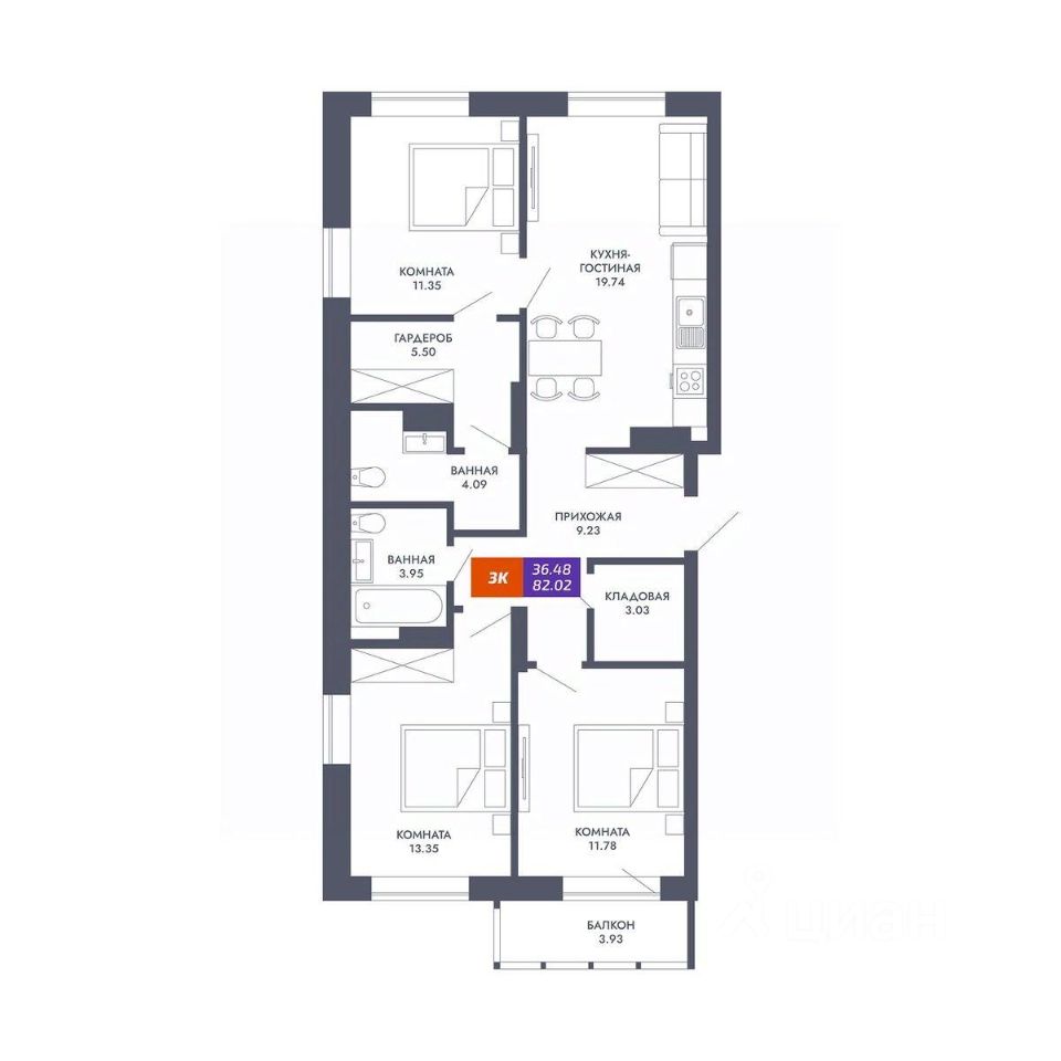 Общая площадь82,02 м2