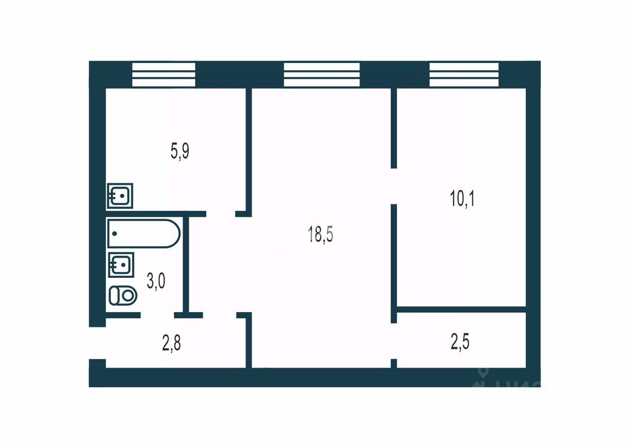 Общая площадь квартиры — 43,1 кв. м, жилая — 28 кв. м, площадь кухни — 7 кв. м. Высота потолков — 2,7 м. Комнаты изолированы, окна выходят на улицу. Установлено центральное отопление.
