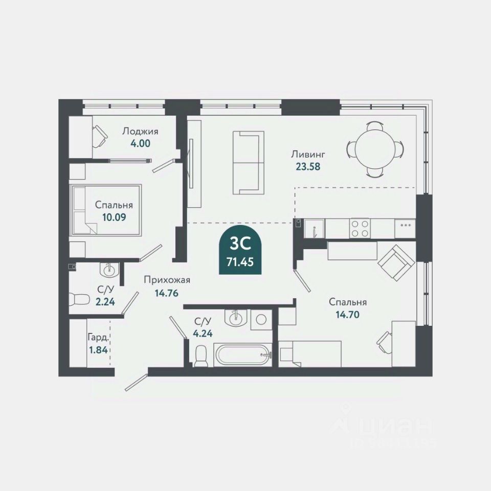 Общая площадь71,2 м2