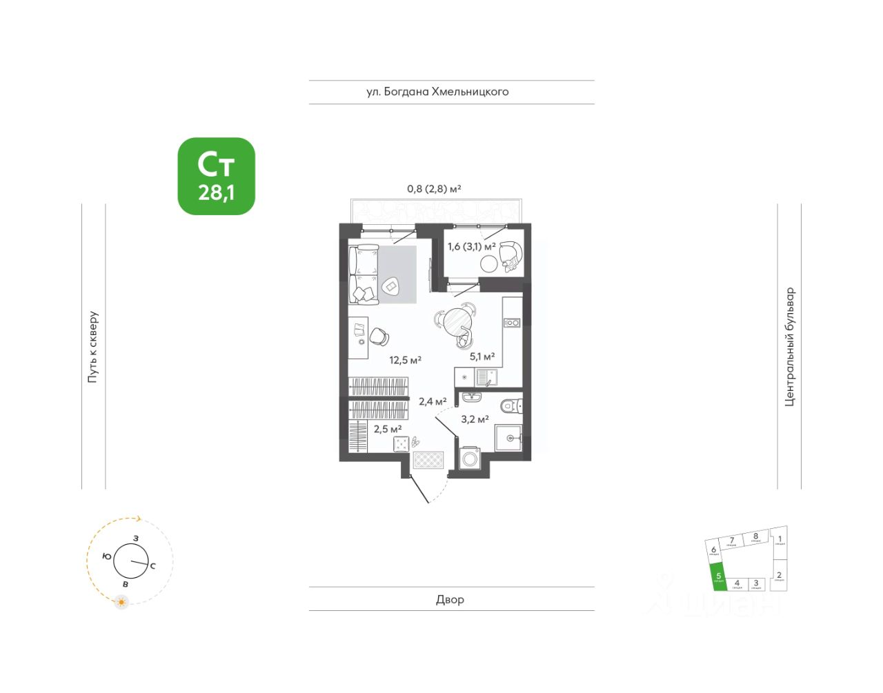 Продаётся студия в строящемся доме (Дом 1), срок сдачи: I-кв. 2028, общей площадью 28.1 кв.м., на 2 этаже. Жить в ритме природы, не теряя динамики города. В ''Сибирии'' свежий воздух встречается с динамикой города, создавая привилегию выбора: завтрак в кофейне на первом этаже дома или заряжающая пробежка в парке, культурный вечер в центре искусств или теплый семейный ужин на террасе. ''Сибирия'' становится частью нового городского кластера - с образовательной средой полного цикла, культурно-спортивным центром, медицинской инфраструктурой, современным центром искусств. Новые школы, детские сады, колледж с кампусом, новая поликлиника - все это делает жизнь комфортной и полноценной.