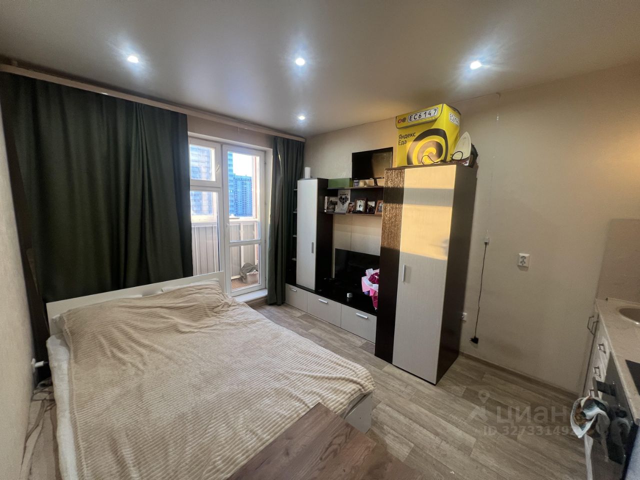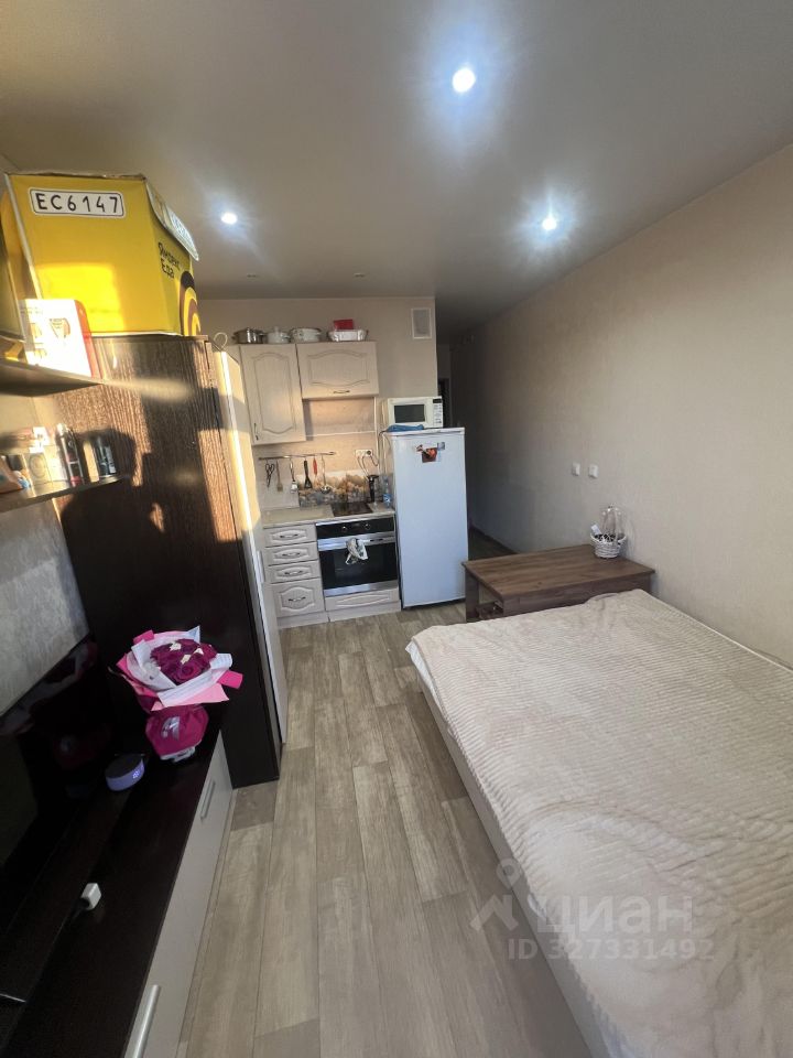 Квартира оснащена всем необходимым для комфортного проживания. В комнате есть мебель, а также установлены холодильник, телевизор и стиральная машина. В санузле — ванна. Косметический ремонт придаёт уют и свежесть интерьеру. Планировка студии позволяет рационально использовать пространство, создавая комфортную атмосферу для жизни.