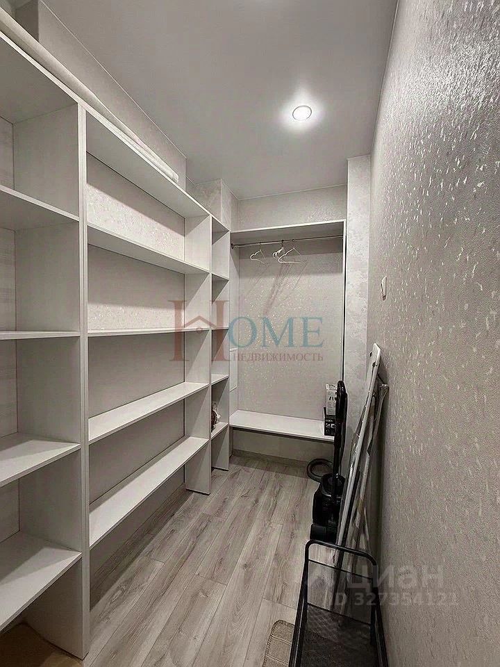 В квартире есть гардеробная, которая добавляет удобства для хранения вещей.